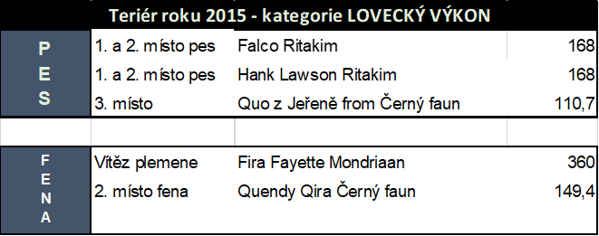 2005 - Anita Lupus Johanus - (242,5 b.) - Nejlepší teriér r. 2005 - PRT v KCHT - Lovecký výkon