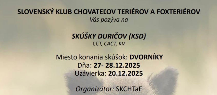 Zkoušky pořádal Slovenský klub chovatelů teriérů a foxteriérů (SKCHTaF).